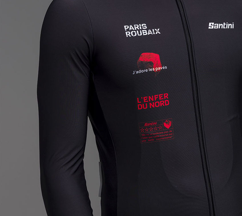 A classic unisex fit, high collar and silicone-grip hem ensure stability and comfort on the bike. Practical features include a triple rear pocket for essentials and reflective details to enhance visibility in low-light conditions. The graphic design pays tribute to Paris-Roubaix’s iconic cobblestones and the legendary winner’s stone engraved with “J’adore les pavés.”